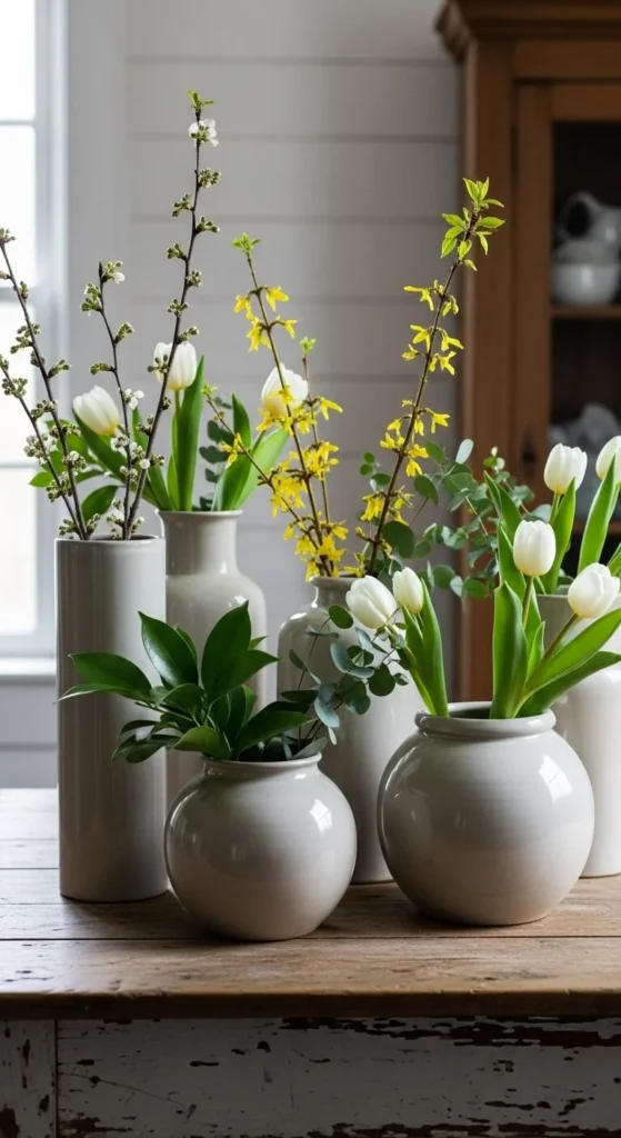 Choose matte ceramics. Use few stems. Less feels more relaxed.