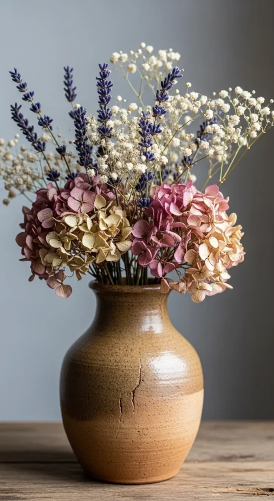 Dried flowers offer texture without upkeep. Use light, airy varieties. Keep arrangements loose. They work well in bedrooms and hallways. Dust them gently to keep them clean.