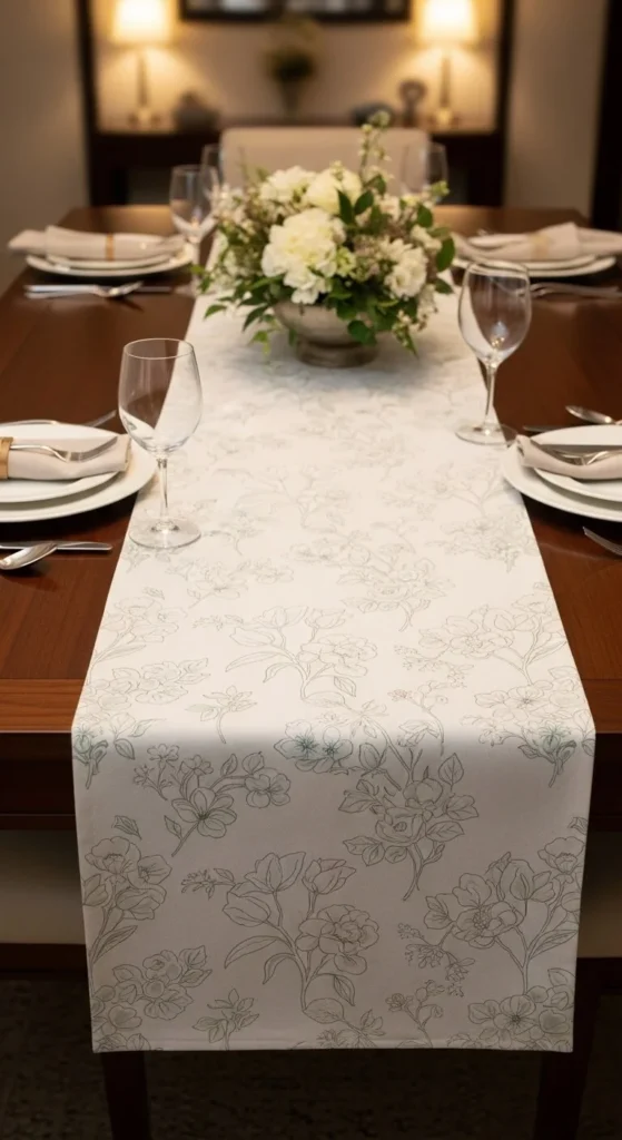 A soft floral runner adds pattern without taking over. Pair it with plain dishes. This adds spring style while keeping the table usable.