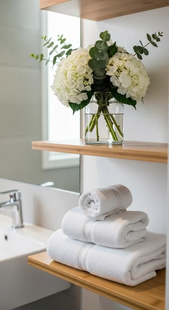 Bathrooms benefit from natural touches. A small vase on a shelf or counter works well. Use flowers that handle humidity. If fresh flowers don’t last, use dried stems. Keep colors light so the space feels clean and open.