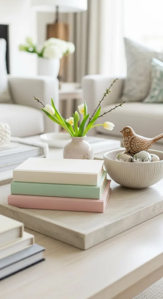 Books can be decor too. Choose covers with light colors. Stack them neatly on tables or shelves.