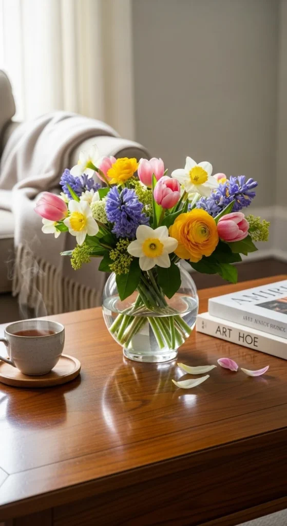 Change flowers as seasons shift. This keeps decor feeling current. Florals add joy without permanent changes.