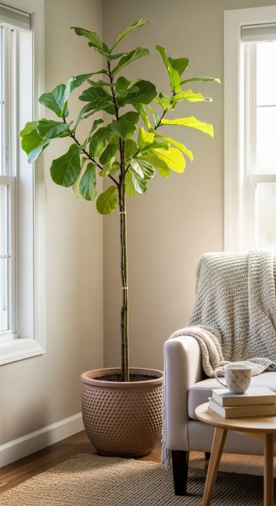 Empty corners feel unfinished. A tall plant fills space gently. Choose slim planters to save room.