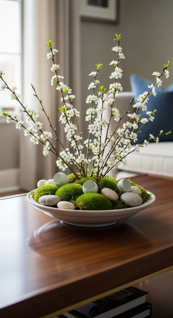 Use simple pots in white, clay, or light wood. Even one plant can change how the room feels. Grouping two small plants at different heights also works nicely. This idea fits small spaces and tight budgets. Greenery pairs well with almost any decor style and brings a calm spring look indoors.