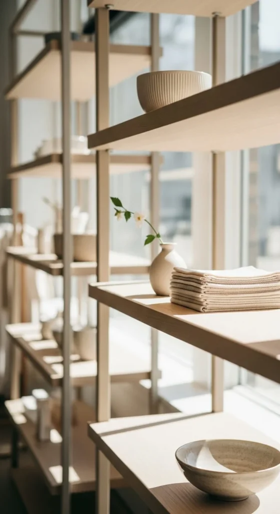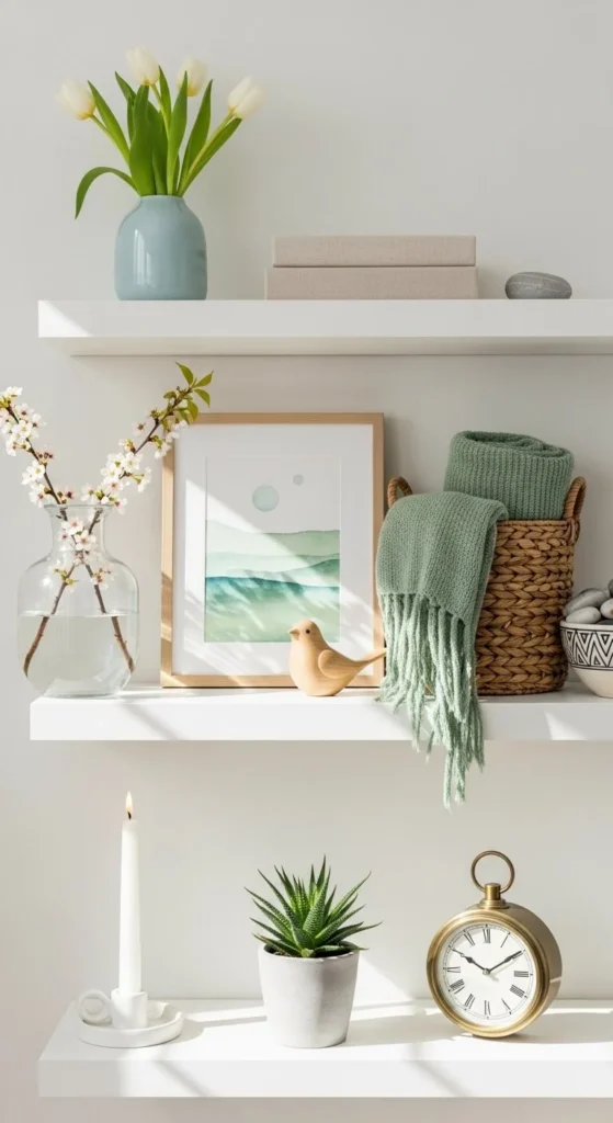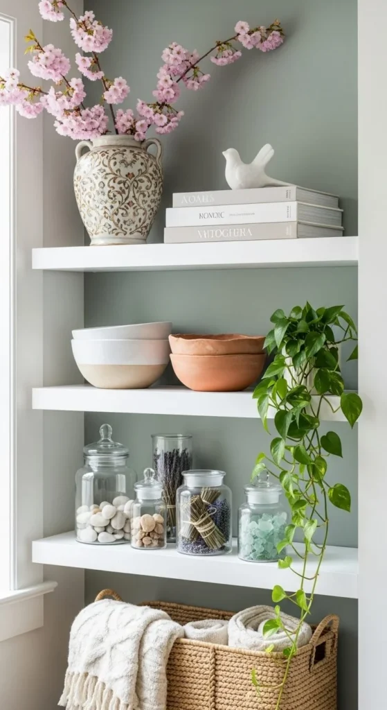 Do not fill every inch. Empty space lets each item stand out. One open area per shelf keeps the look light. Space is part of the design.