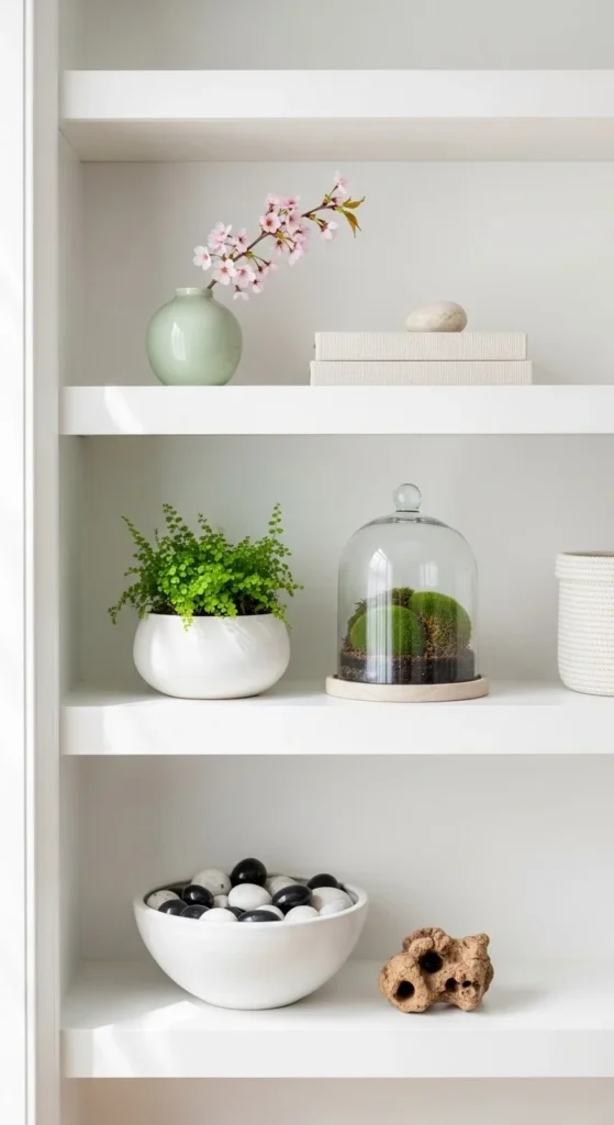 6. Add One Natural Element Per Shelf