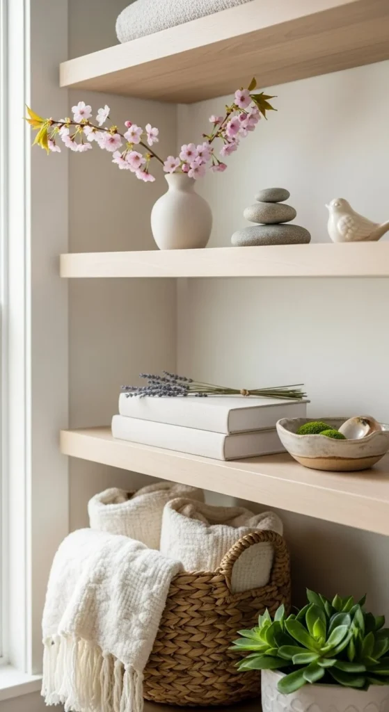 Curated shelves rely on restraint, spacing, and repeat elements. Spring styling works best when shelves breathe and light moves freely. Focus on fewer items, soft colors, and clear structure. Small changes bring clarity and calm to any shelf setup.