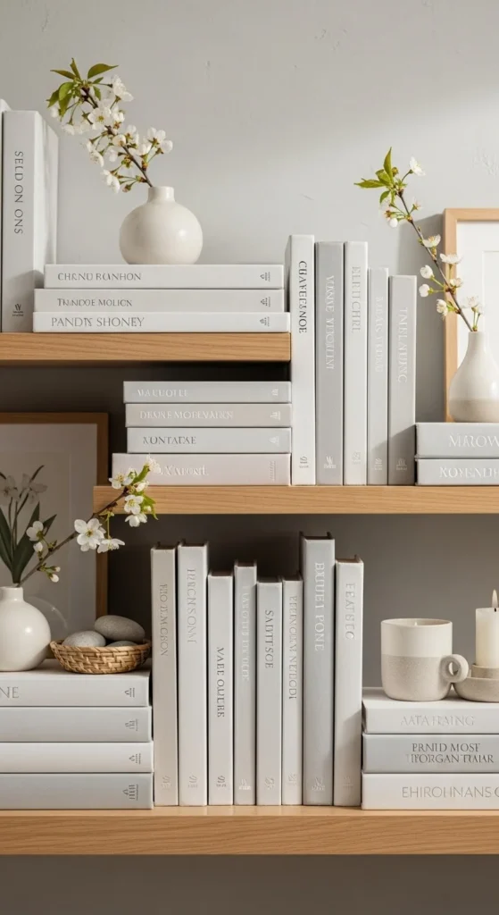 Books fill space without visual noise. Turn spines inward if colors clash. Stick to light covers for spring.