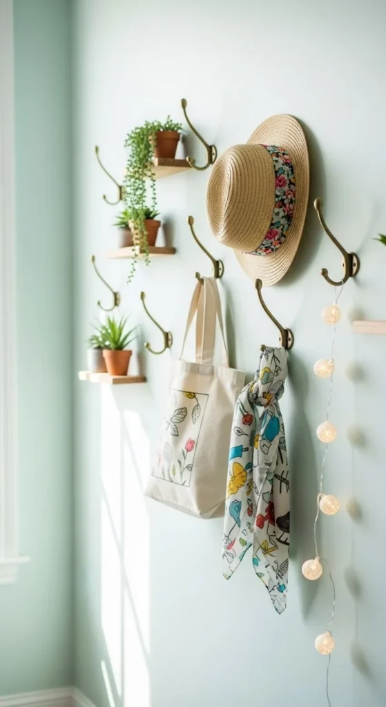 Hang hats, bags, or light baskets. This adds function and visual interest.