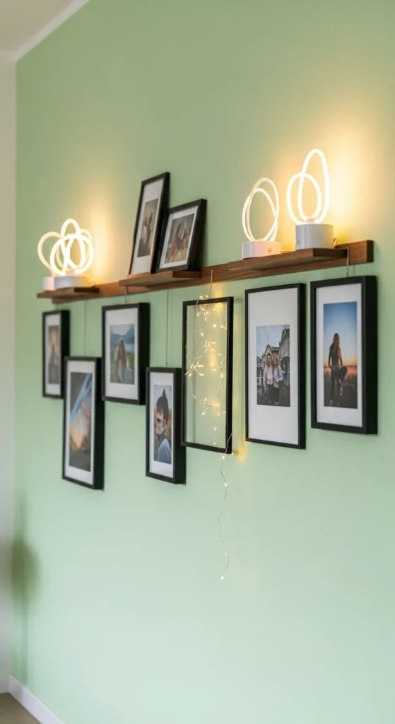 A gallery wall adds interest without needing large art pieces. Use small frames with space between each one. Stick to a limited color palette for balance.