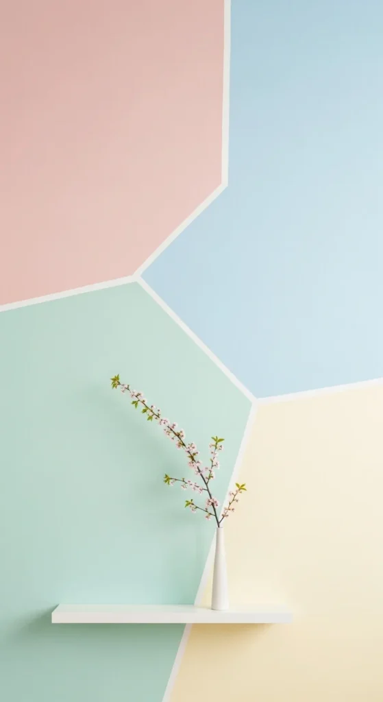 Paint small sections of the wall in soft colors. Use shapes like arches or rectangles.
