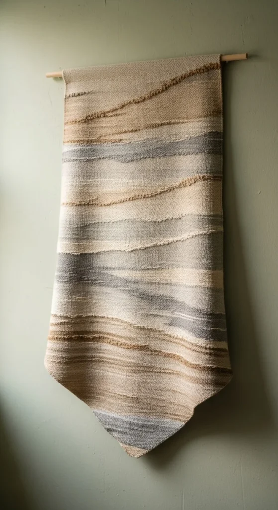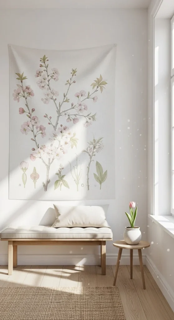 Fabric wall hangings add softness. Choose light cotton or woven pieces in calm colors.