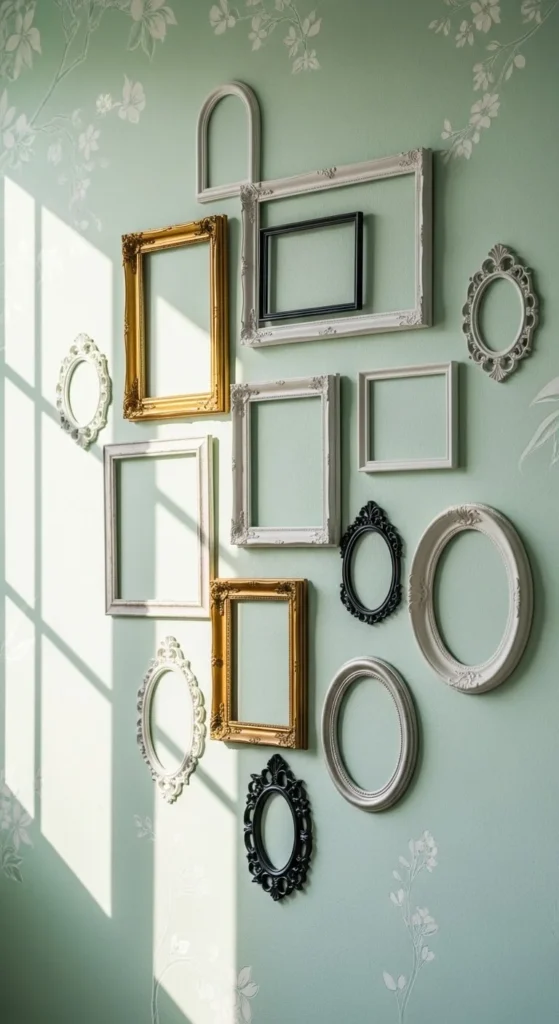 Empty frames can be art. Arrange them in a loose layout.