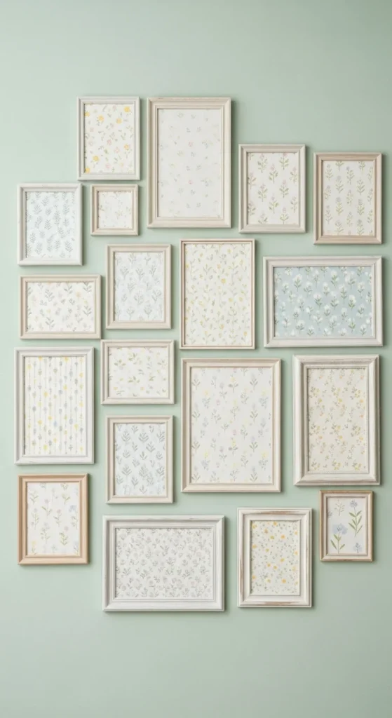 Wallpaper samples can become art. Frame small pieces with subtle patterns.