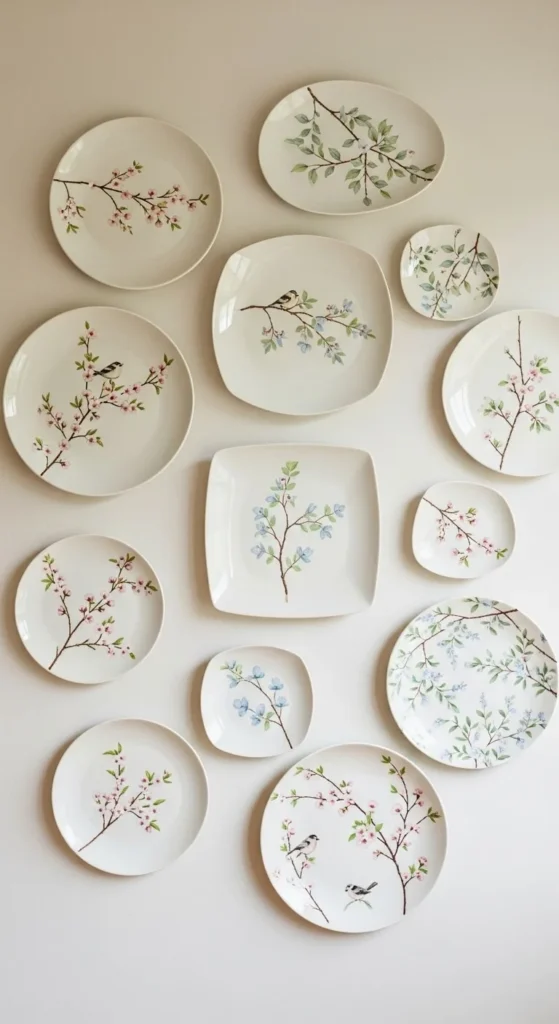 Decorative plates work well on kitchen or dining walls. Choose plates in soft colors or simple patterns.
