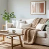 Add a single coloured accent pillow or a neutral throw for a subtle pop.