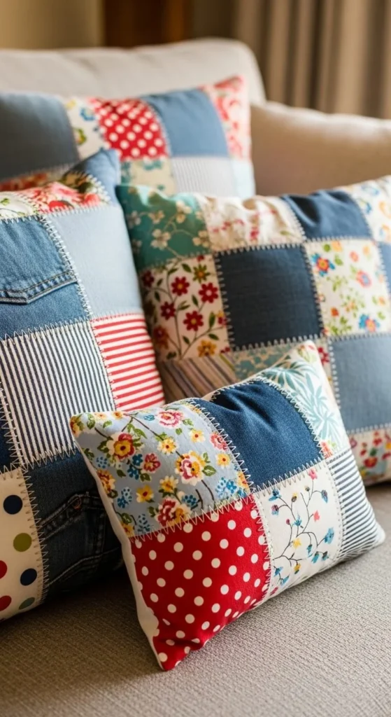 Patchwork pillows add charm to couches, beds, or reading nooks.