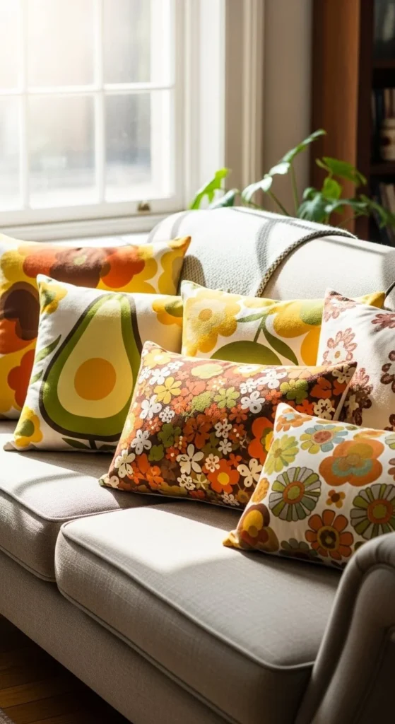 Vintage pillows add charm without needing expensive decor.
