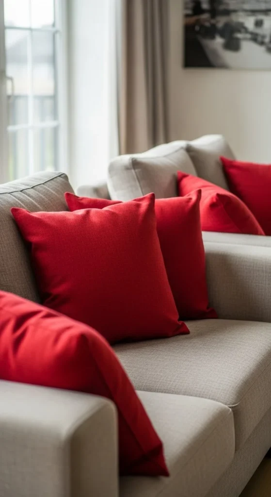 17. Bold Red Accent Pillows