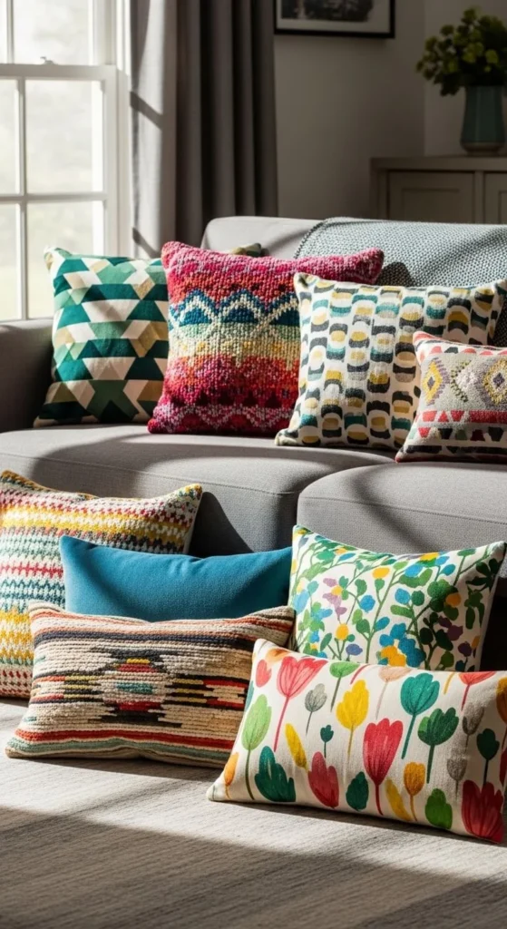 Below are 20 stylish throw pillow ideas that instantly add color to your space while keeping things practical and budget-friendly.