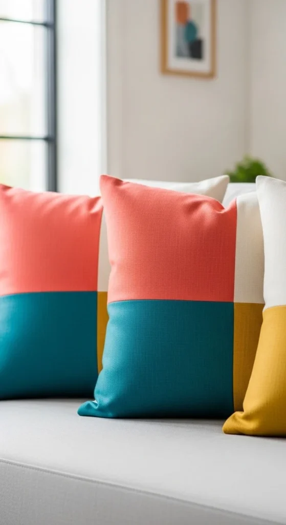 Color block pillows work well in modern apartments and small spaces. They add color without making the room feel crowded.