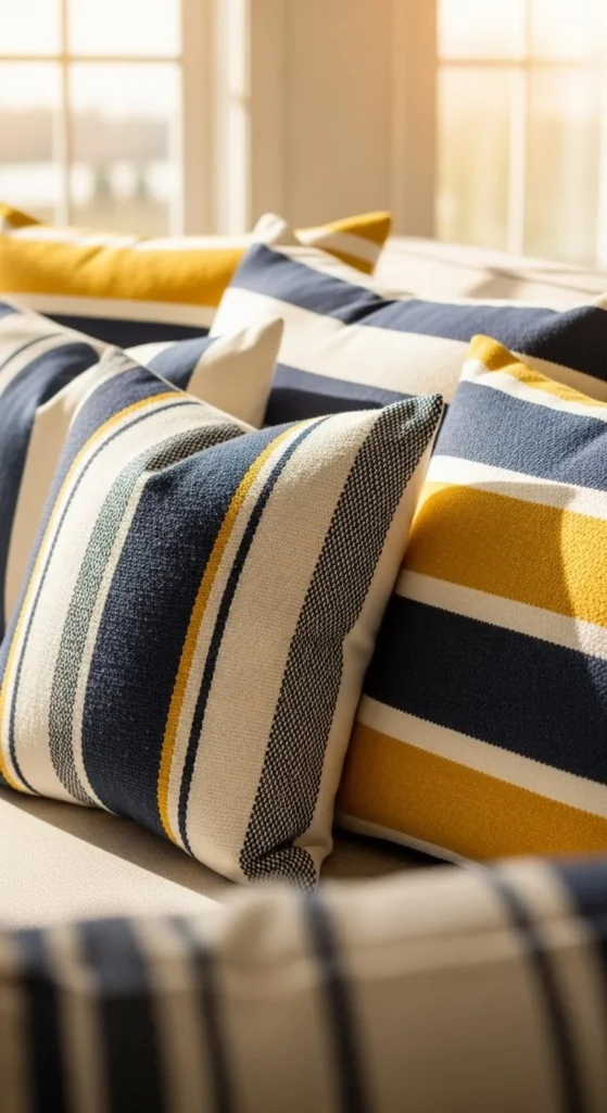 Another trick is mixing stripe directions. One pillow can have vertical stripes while another has horizontal ones.